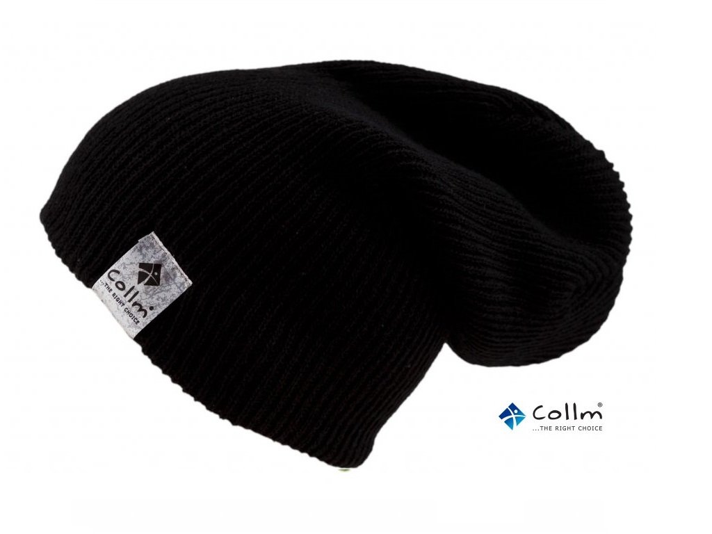 ĽAHKÁ PLETENÁ ČIAPKA COLLM v čiernej farbe so striebornou etiketou.