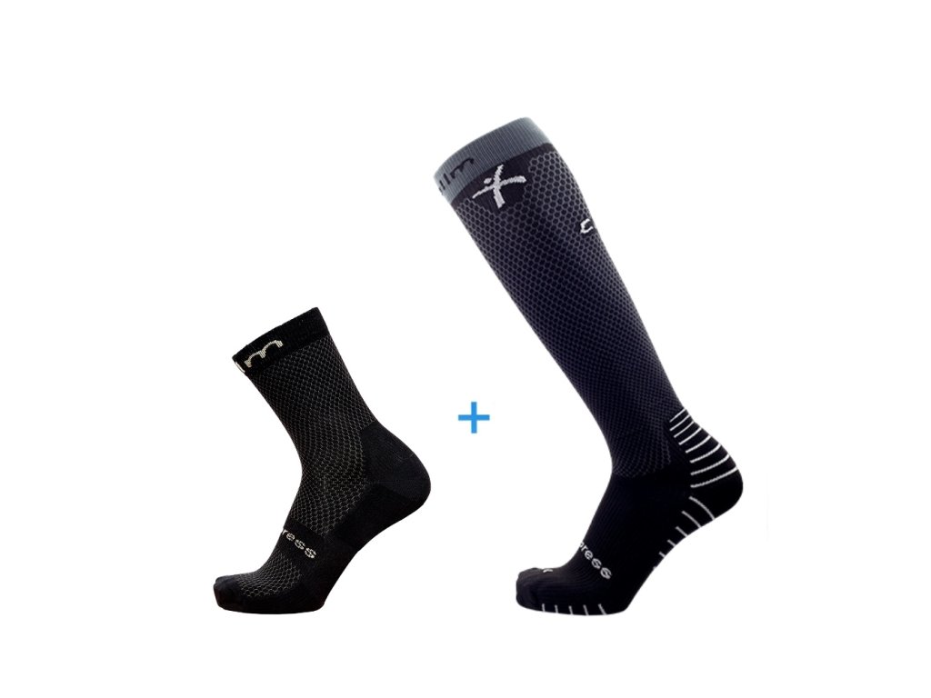 Spoločne výhodnejšie! Spoločné balenie kompresných podkolienok a kompresných ponožiek COLLM RUN PRO v čiernej farbe za zvýhodnenú cenu.