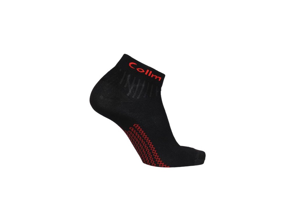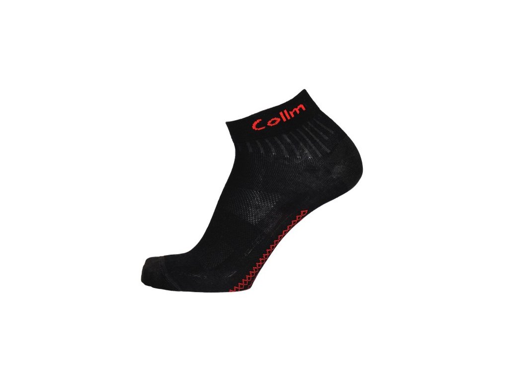 Športové, anatomicky navrhnuté, nízke členkové ponožky COLLM Power s jemnými prúžkami v chodidle, doplnené zosilnenou pätou a špičkou. Športové ponožky Power zaisťujú vďaka polypropylénovým vláknam odvod vlhkosti z povrchu pokožky a tím udržujú pokožku suchšiu.