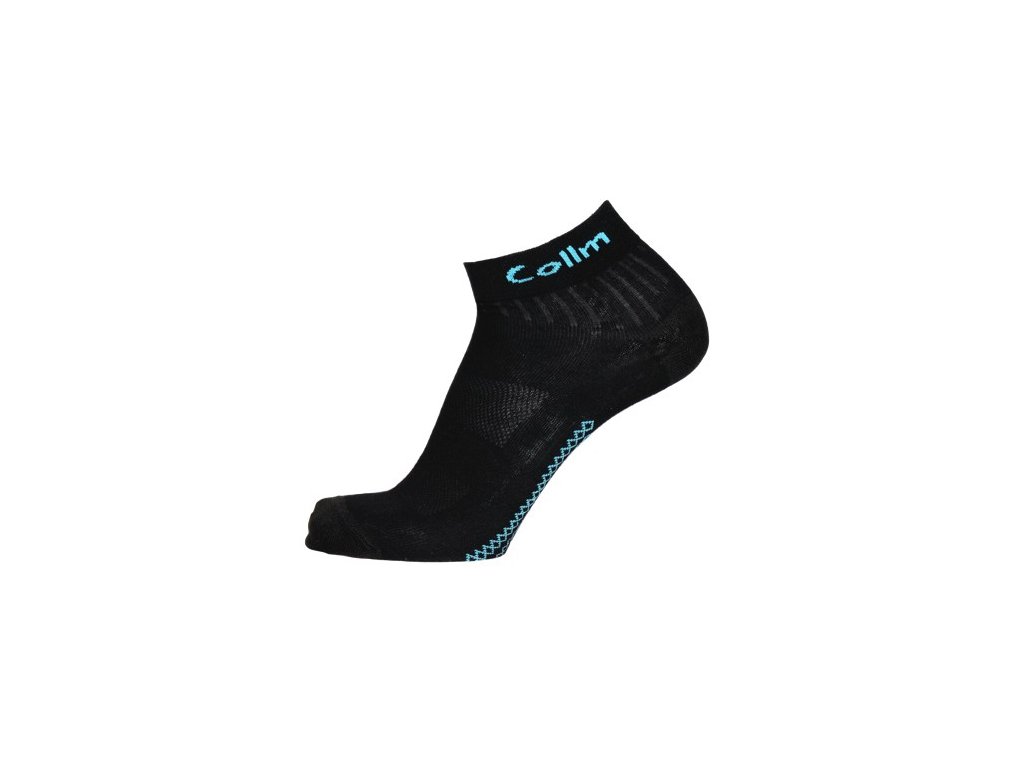 Športové, anatomicky navrhnuté, nízke členkové ponožky COLLM Power s jemnými prúžkami v chodidle, doplnené zosilnenou pätou a špičkou. Športové ponožky Power zaisťujú vďaka polypropylénovým vláknam odvod vlhkosti z povrchu pokožky a tím udržujú pokožku suchšiu.
