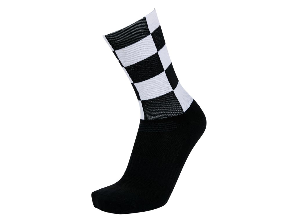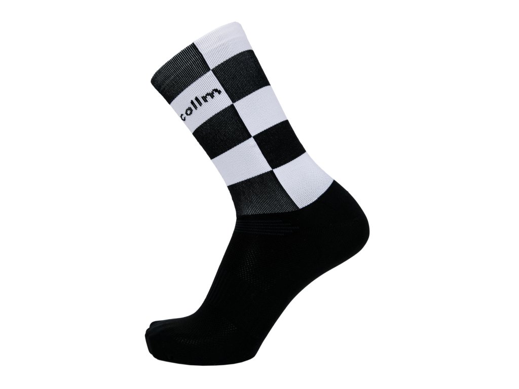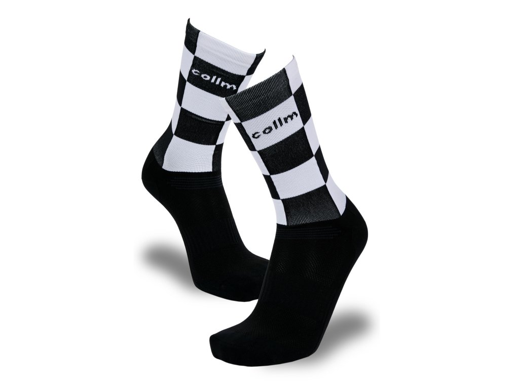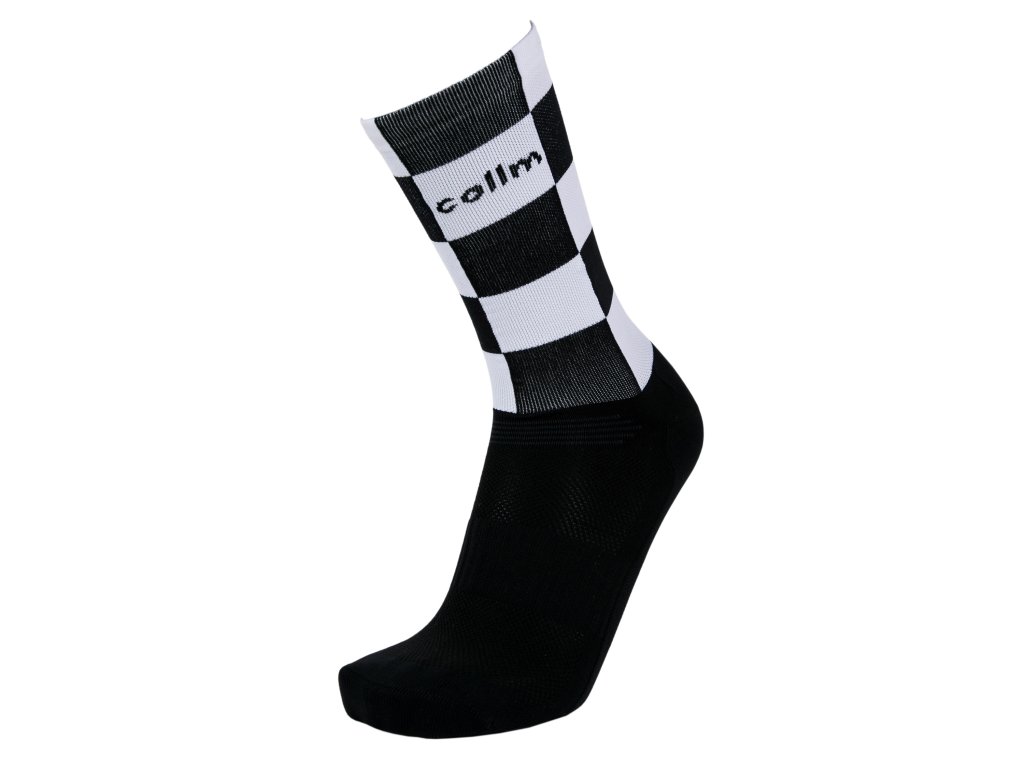 Funkčné, športové, vysoké ponožky COLLM ACTIVE so vzorom čierno-bielej šachovnice.