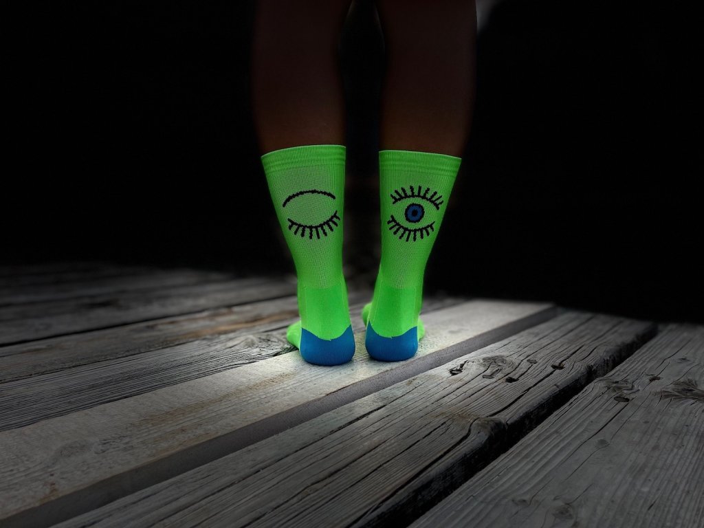 Všetky oči na mňa. Mám žmurkajúce ponožky. V týchto ponožkách ťa nikto neprehliadne.