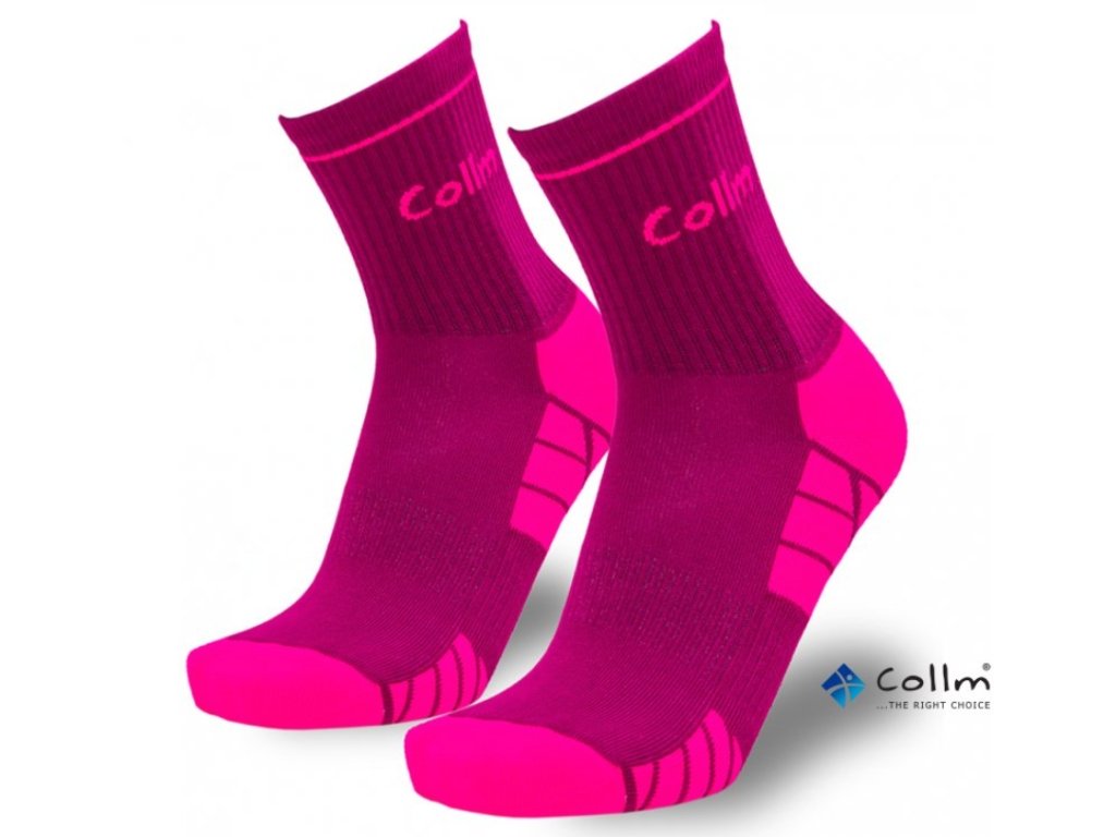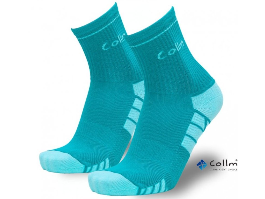 Na chodidle polstrované športové ponožky COLLM JOLLY. Obsahujú špeciálne polypropylénové vlákno (Prolen-Siltex), obohatené o antibakteriálne prísady na báze biogennych ióntov striebra. Široký horný lem pre väčšie pohodlie a stabilitu ponožky na nohe.