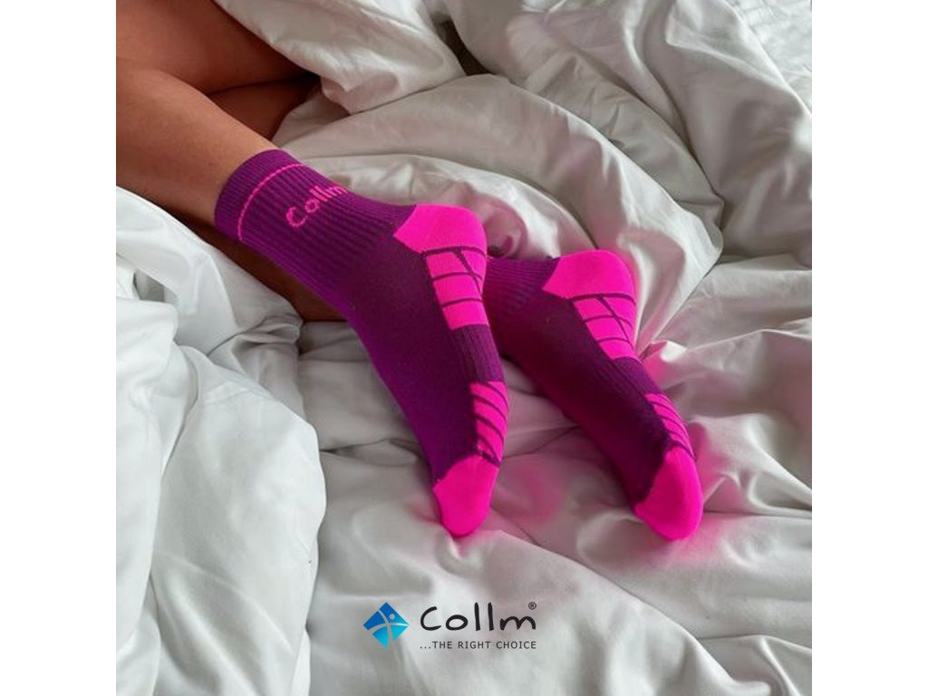 Na chodidle polstrované športové ponožky COLLM JOLLY. Obsahujú špeciálne polypropylénové vlákno (Prolen-Siltex), obohatené o antibakteriálne prísady na báze biogennych ióntov striebra. Široký horný lem pre väčšie pohodlie a stabilitu ponožky na nohe.