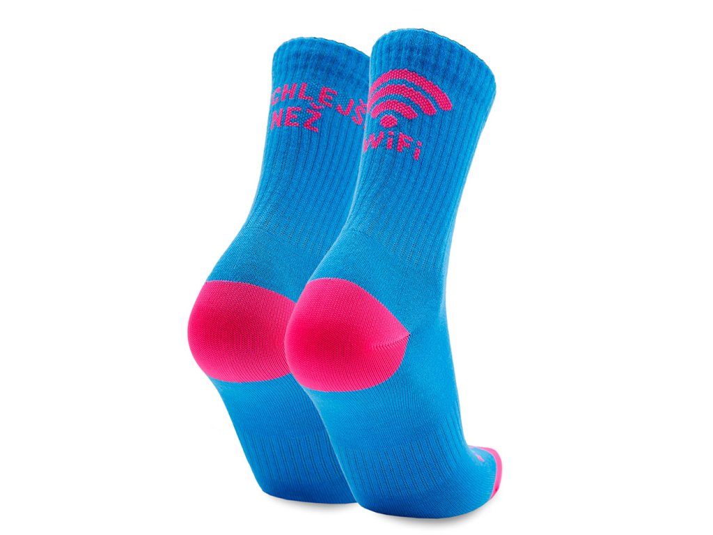 Športové ponožky RYCHLEJŠÍ než WIFI v modro-ružovej farbe